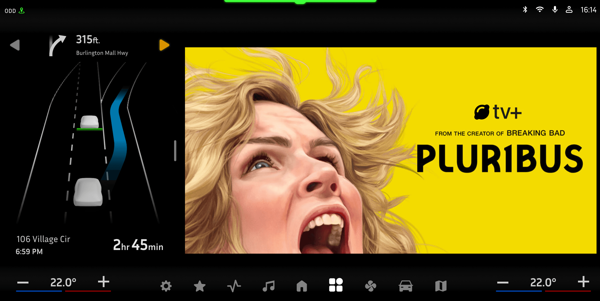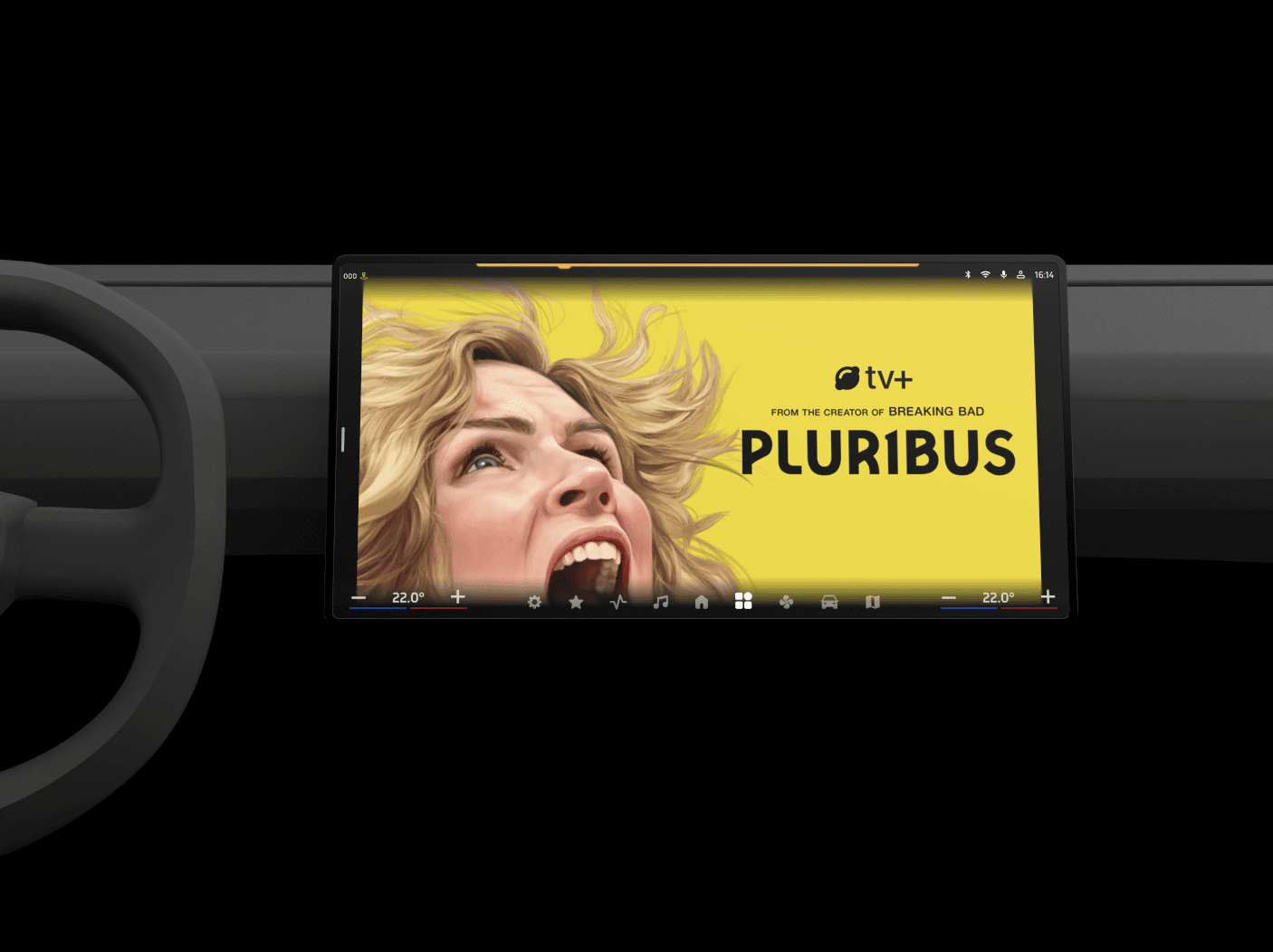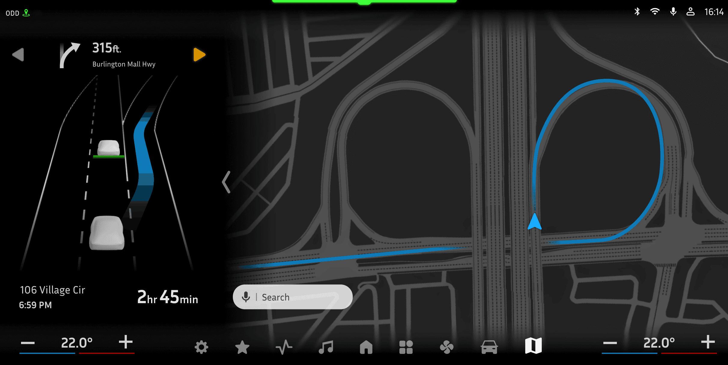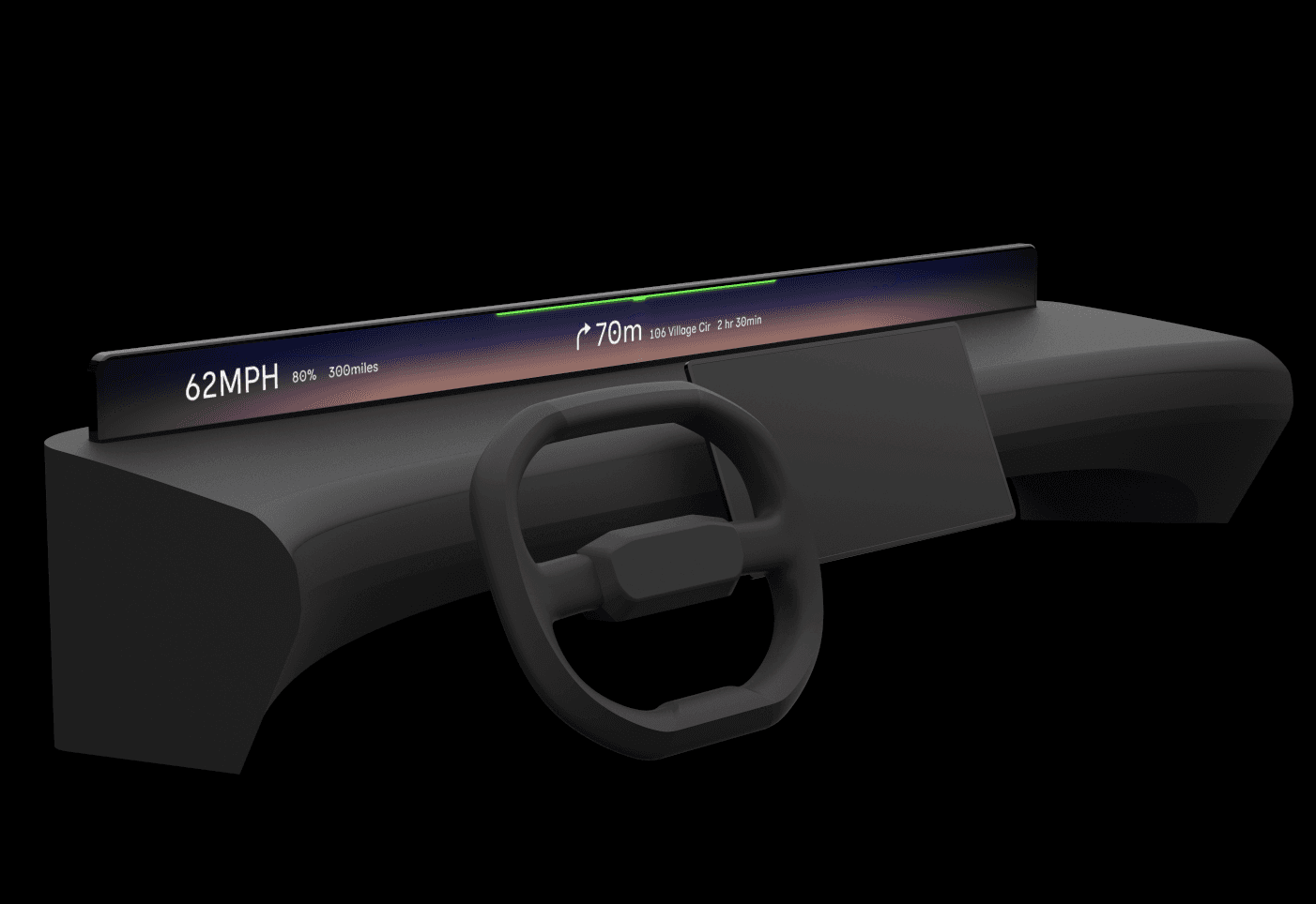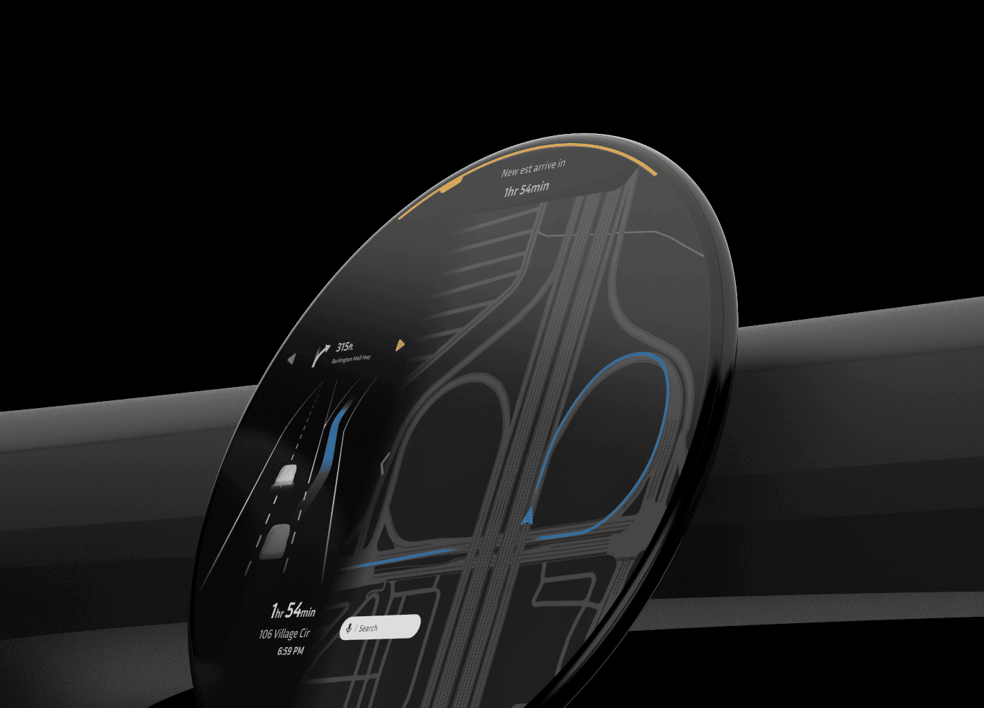 For routine, system-planned maneuvers, the interface remains in Ambient Standby. Only the Smart Notch provides subtle visual feedback of the car's physical intent