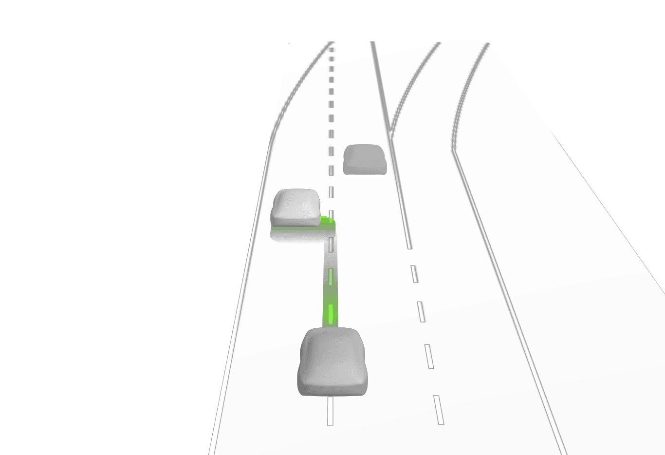 This indicator tracks the front car's lateral offset relative to your own vehicle's planned trajectory. Providing an visual explanation for speed adjustment or steering.