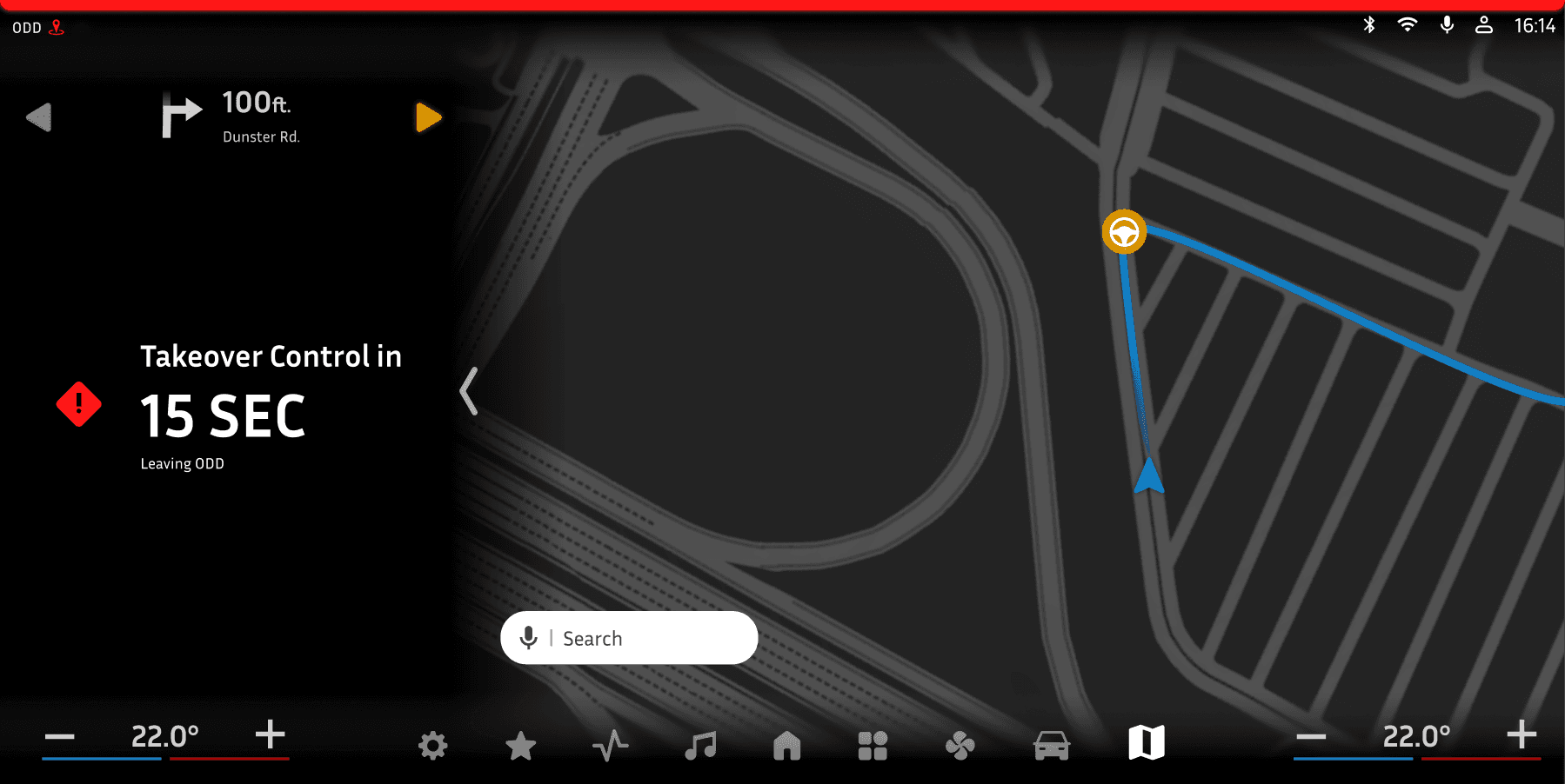An L4 system is defined by how it handles its own limits. As the vehicle approaches the edge of its Operational Design Domain (ODD), the UI shifts from an ambient partner to a tactical guide.